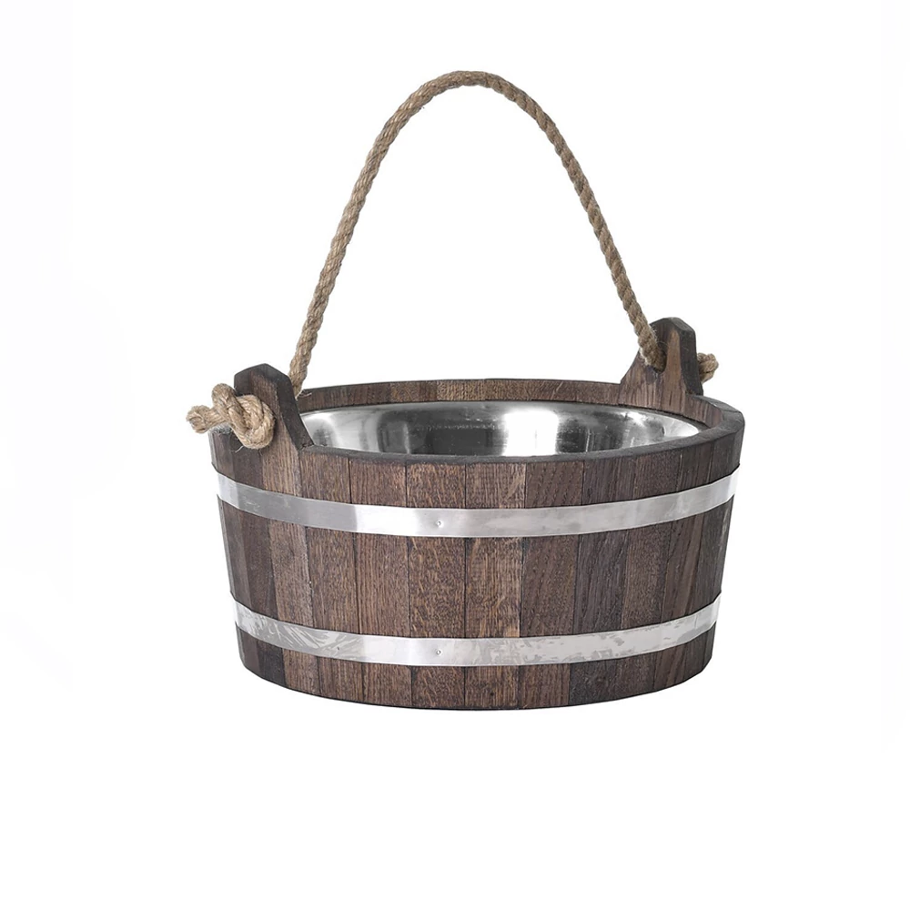 Шайка 3,5л морёная с нержавеющей вставкой из кавказского дуба. Толщина дерева 15мм, крашеное фанерное дно с отверстием для устранения влаги между вставкой и деревом,уплотнительный обод из нержавеющей стали.