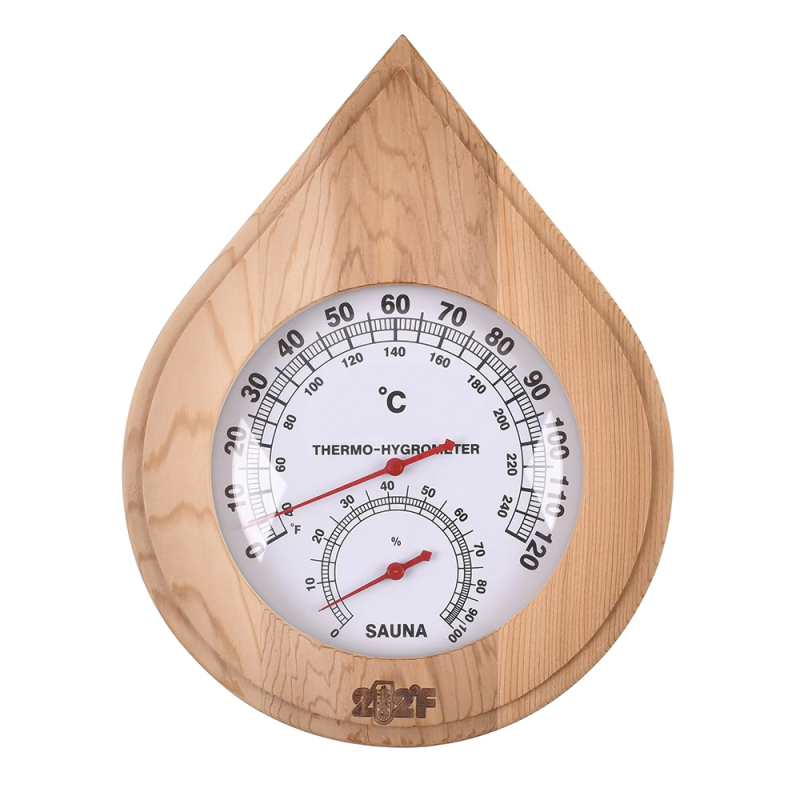 Измерительный прибор температуры и влажности с большим циферблатом из канадского кедра. Из-за неоднородности цвета древесины изделия бываю светлого, тёмного и переходного оттенка