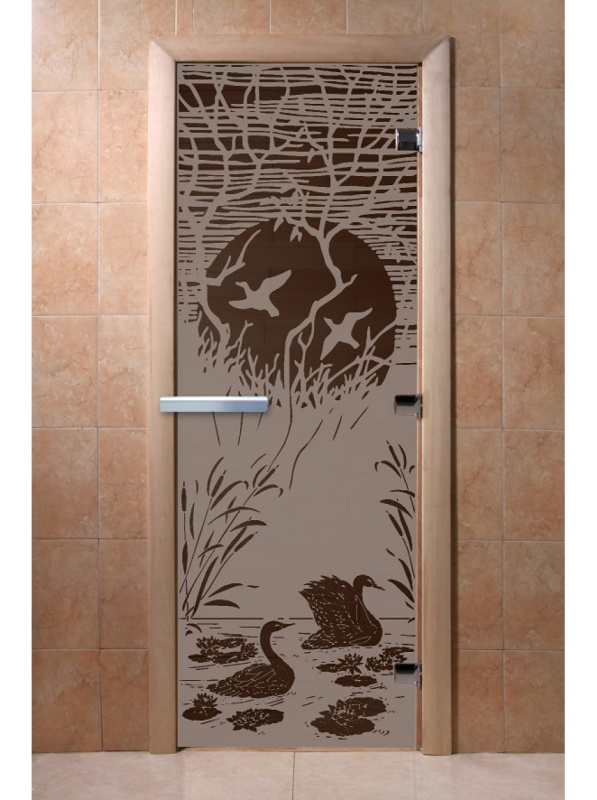 Дверь DoorWood "Лебединое озеро" Графит 1900*700 (Ольха 3п, 8мм)