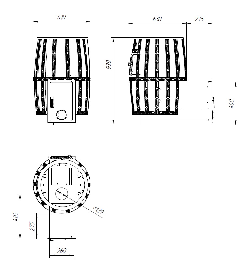 Диаметр дымохода 130 мм.
