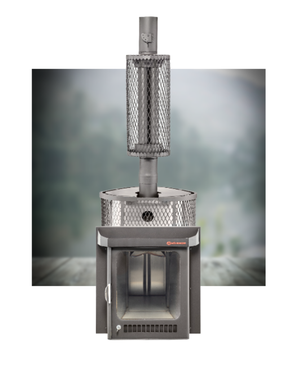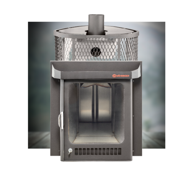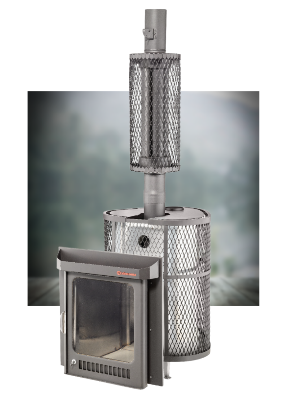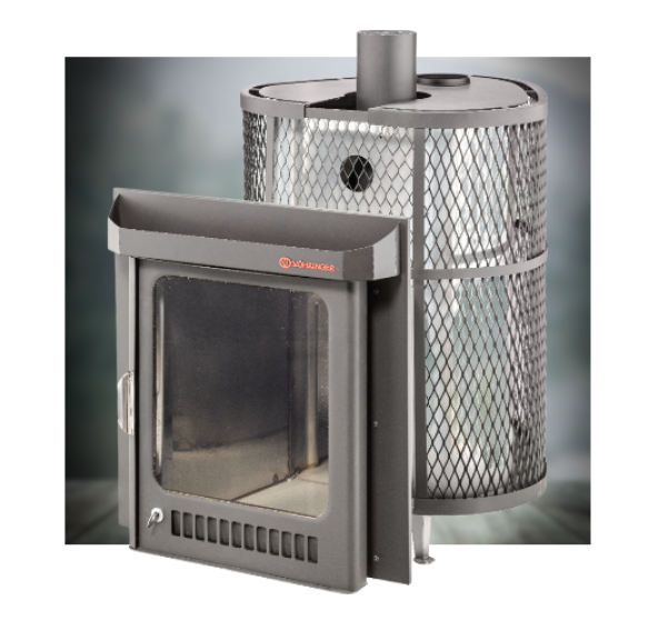 Печь для бани Ферингер Оптима в сетчатом кожухе для закладки камней - топится только на дровах и спроектирована под режим "Русская баня", где около 60-ти градусов температуры и влажности. Так же, при доведении температуры в парной до 40 градусов (примерно), с помощью пифа, можно создать условия повышенной влажности, режима хаммам.