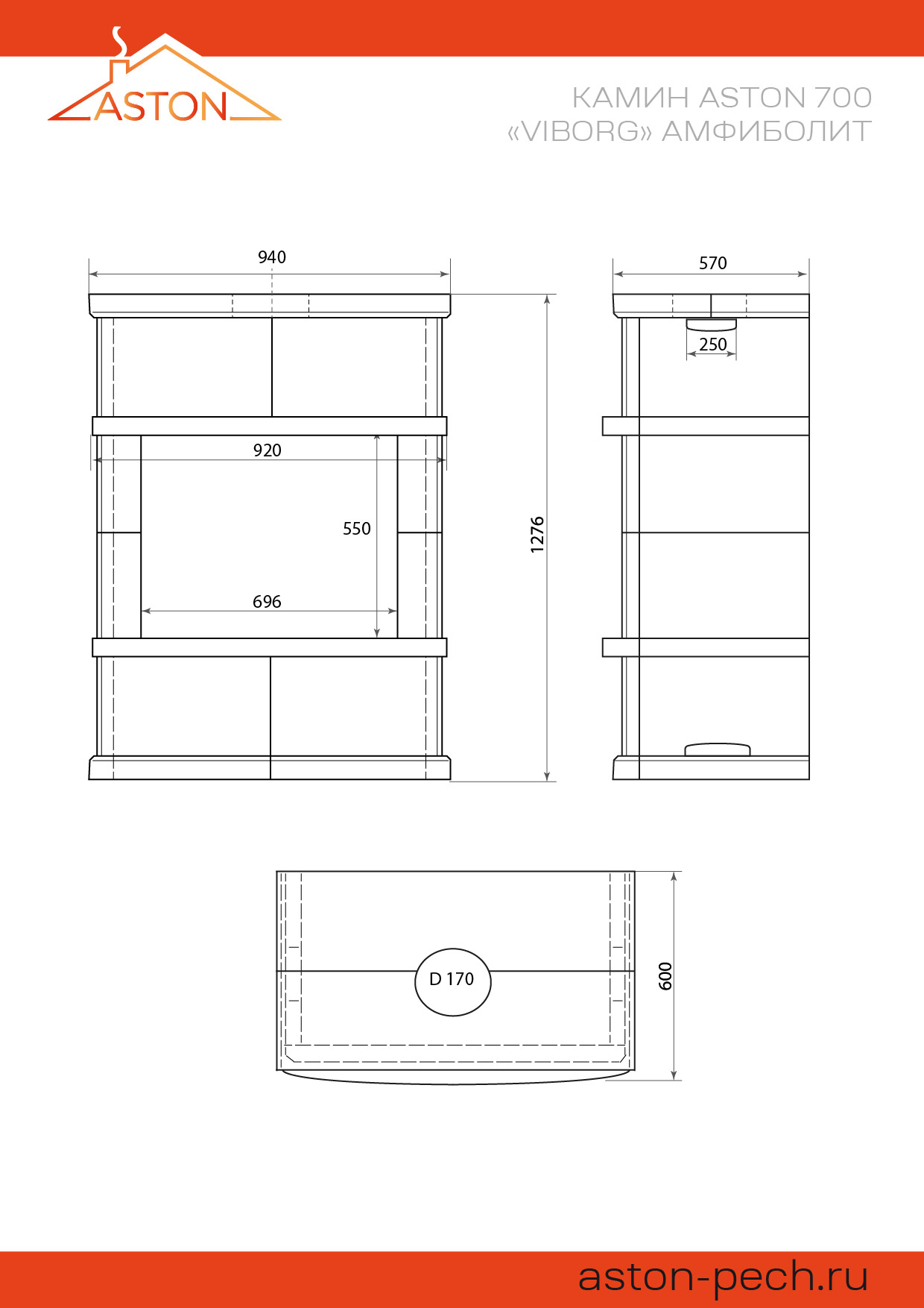 Камин ASTON 700 «VYBORG» Н-1276 Амфиболит диаметр дымохода: 150 мм