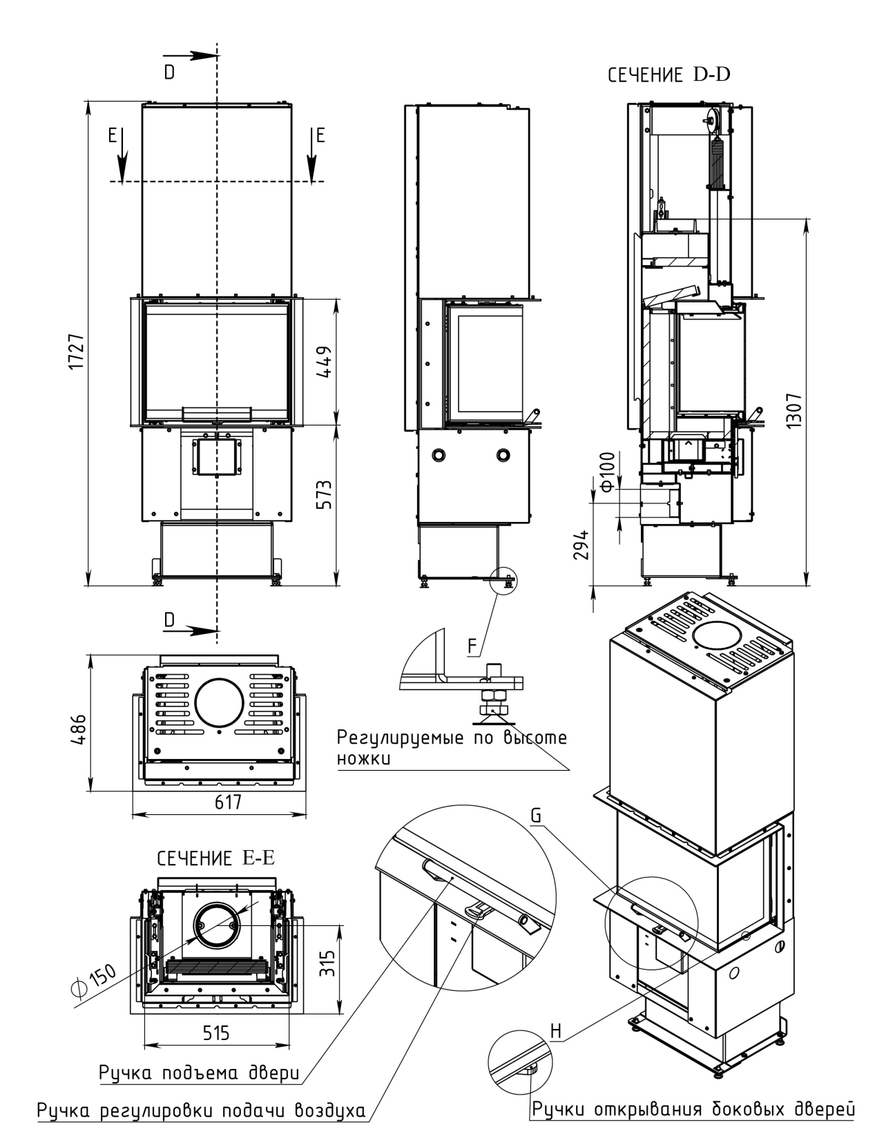 Диаметр дымоходного патрубка: 150 мм
