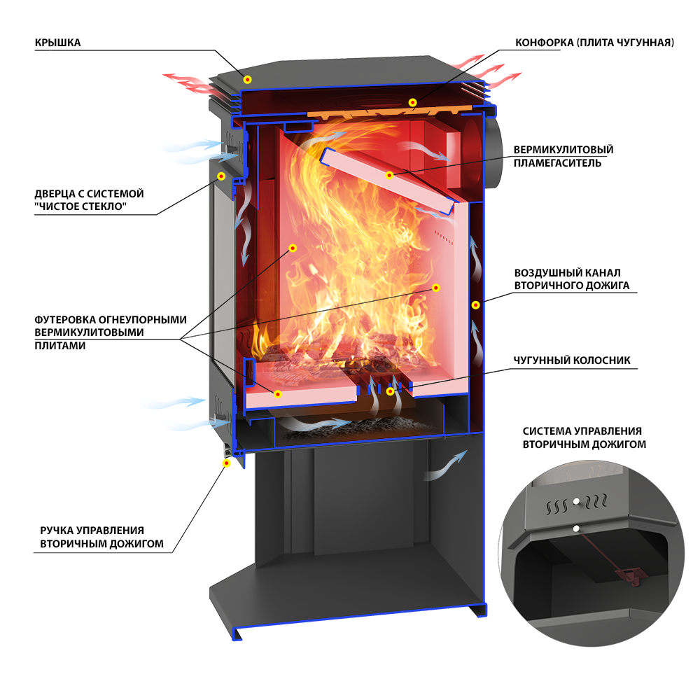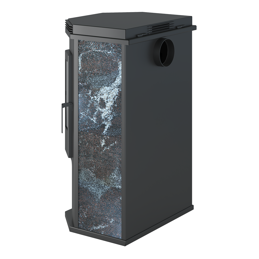 Печь-Камин ASTON 12 кВт (200 м3) Призматик с плитой (Амфиболит) диаметр дымохода: 150 мм