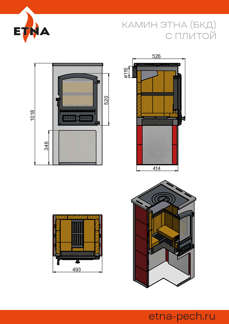 Камин ЭТНА (БКД) с плитой "Антрацит" Ø 115мм диаметр дымохода: 115 мм
