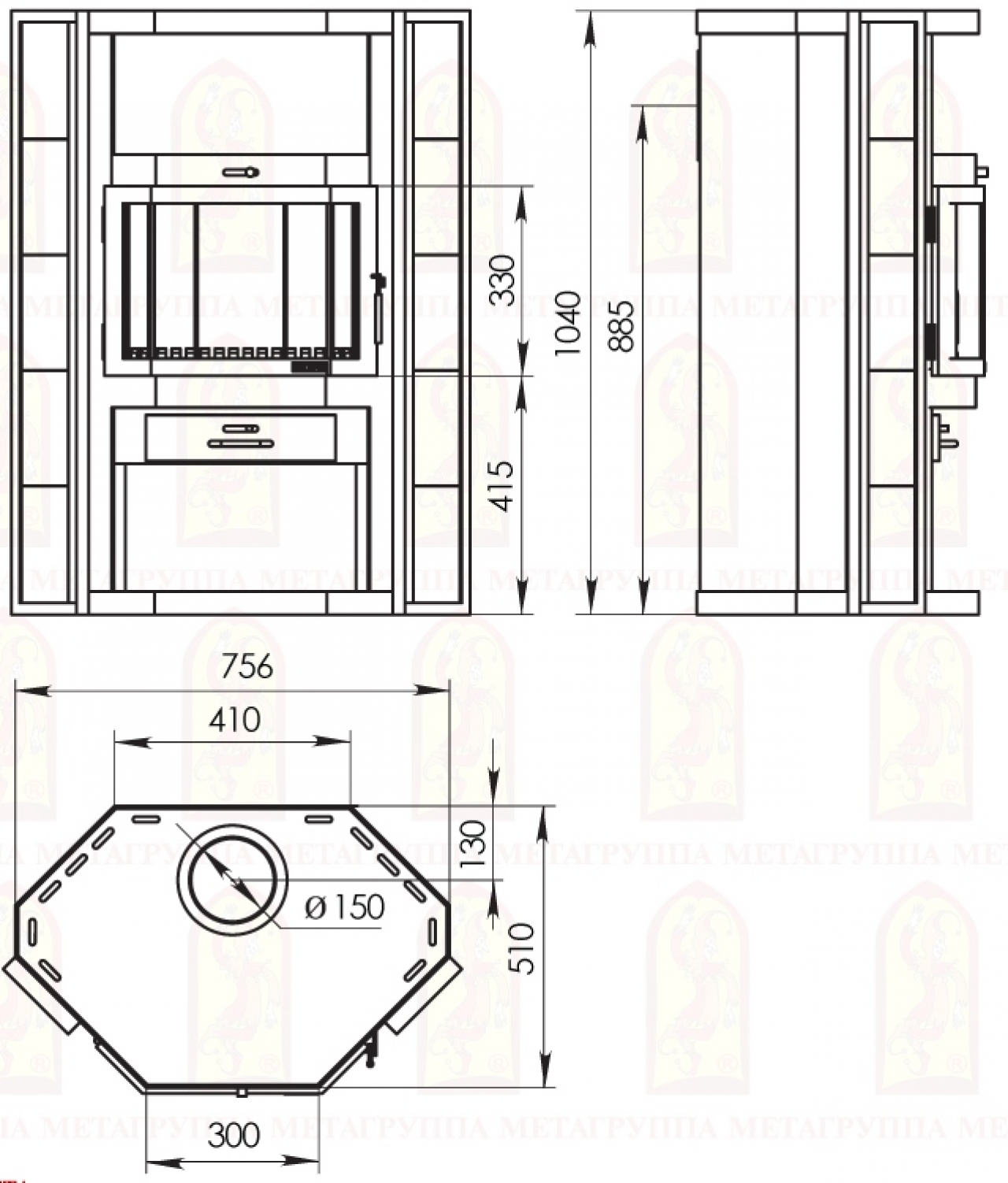 Диаметр дымохода, мм:150