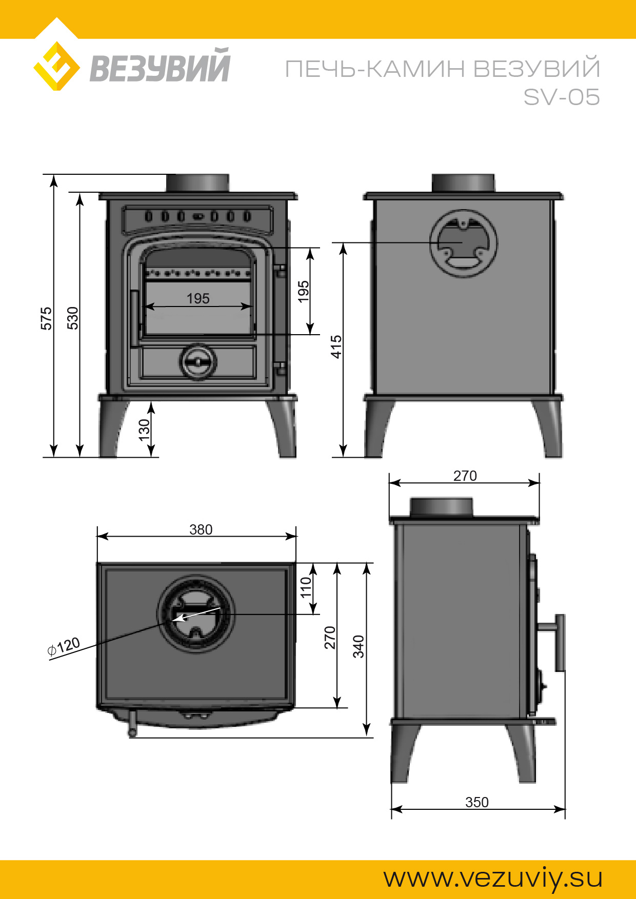 Печь-камин Везувий SV-05 "Антрацит" диаметр дымохода: 120 мм