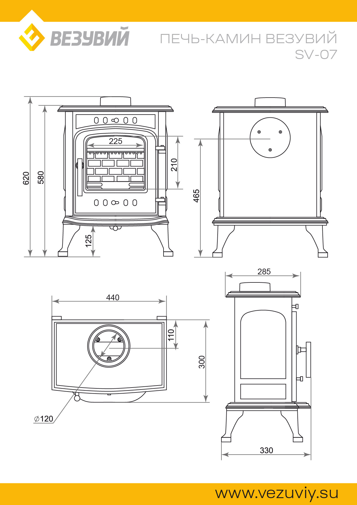 Печь-камин Везувий SV-07 "Антрацит" диаметр дымохода: 120 мм